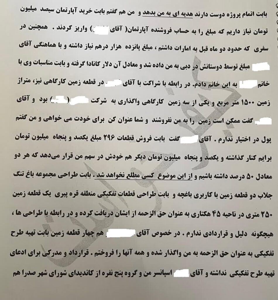 مسیر حقوقی از طریق نهادهای نظارتی در خصوص پرونده شرکت عمران صدرا و رای نهایی که در تناقض با کیفرخواست می باشد در حال پیگیری است و بدلیل اجتناب از ایجاد دلسردی بین مردم تا کنون سکوت و از پرداختن به موضوع در فضای مجازی خودداری کرده است.